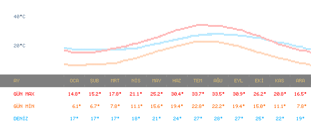 Yukarıda verilmiş olan sıcaklık dereceleri geçmiş senelerden alınan ortalama değerlerdir. Değişiklik gösterebileceğiniz dikkate almanızı önemle rica ederiz.